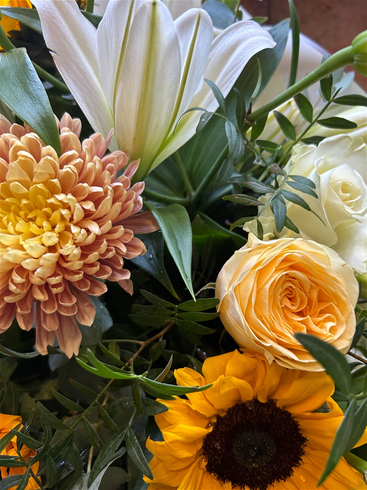 please note that depending on time of ordering we might have to substitute certain blooms verity, but we always keep within your chosen design of sunflowers and lilies.